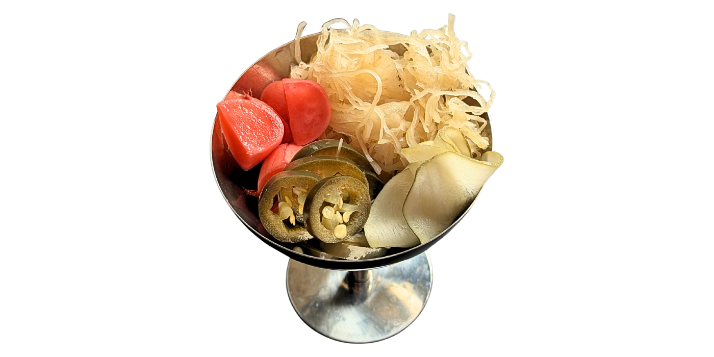Fermented Jalapeno, Sauerkraut, pickled zucchini and salted radishes